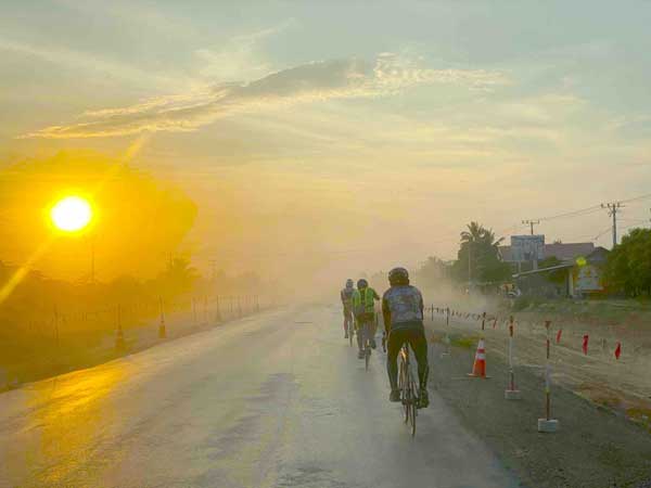 最高気温35度を超えるなか、毎日平均150kmを走行しました。移動距離が200kmに及ぶ日は、朝4時から夜7時まで、灼熱の道を目的地まで走り続けました。