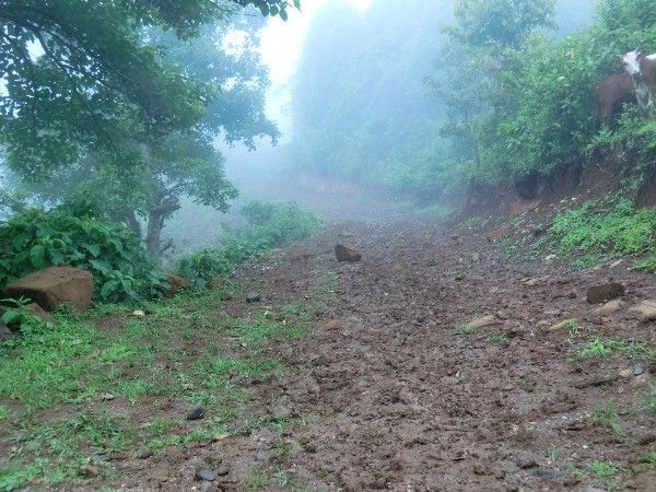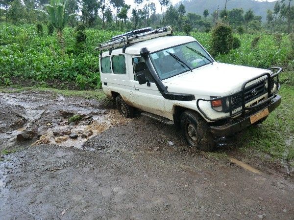 そのような道を走るということは、車が道半ばで行き詰まることもあります。そのたびに近くの石を積み上げて車が通れるように工夫し、川が溢れ行く手を阻んでいても、なんとか石を敷き詰めて道を作ります。度重なる雨で道が没落し、現場に行く途中で断念、引き返すことも多々あります。そうやって苦労して車を走らせること数時間。ようやくプロジェクトの現場に行き着くのです。